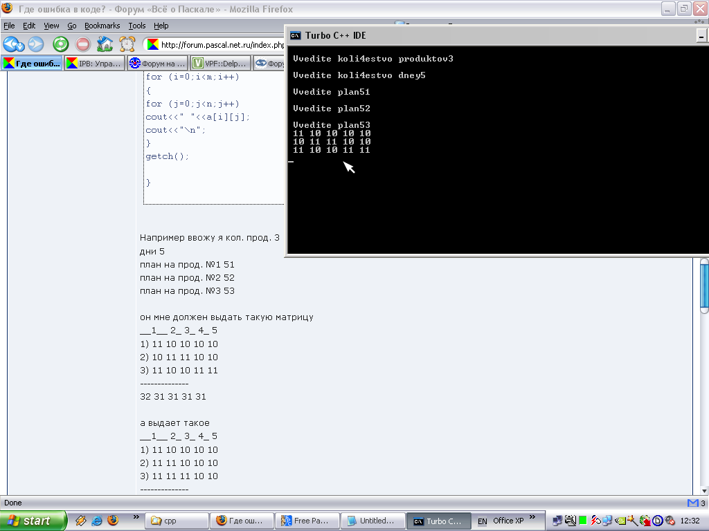 объявлять переменные не по-паскалевскому... то есть не все кучей в начале, а по блокам. например, зачем тебе глобальные i и j? они все равно используются только в отдельных циклах. вот и пиши for(int j=0;j<n;j++) и - отступы. иначе код хуже читается. -------------------- Все содержимое данного сообщения (кроме цитат) является моим личным скромным мнением и на статус истины в высшей инстанции не претендует.