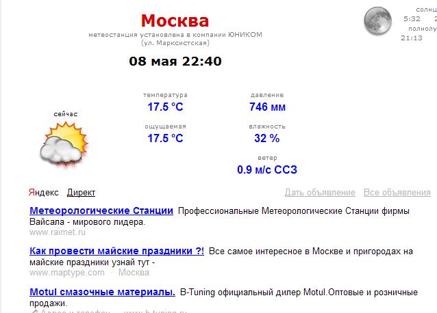 Я почти каждый день захожу на сайт realmeteo.ru т.к. дойти до балкона мне лень что бы посмотреть температуру за бортом + у меня балкон на юг и градусник врет из-за солнца.