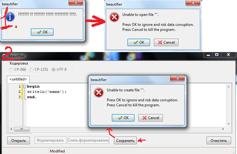 Хорошо получилось.. Кстати, как вариант, можно добавить ещё маску форматирования, где после then, else или do оператор begin не переносится на другую строку. И ещё, при выходе программа спрашивает "Действительно хотите выйти без сохранения?", и там кнопки "Нет" и "Cancel" играют одну роль вроде) Ps: Кнопка "Снять форматирование" нужна, для наглядости) Сообщение отредактировано: Unconnected - 8.09.2010 12:34 -------------------- "Знаешь, стыдно - когда не видно, что услышал всё, что слушал.."