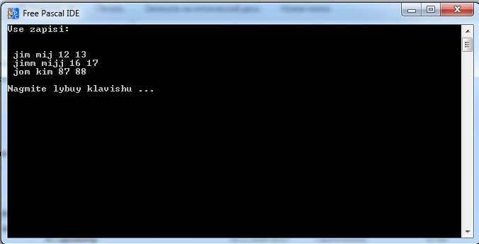 вот сам файл. Первый пост компилировался, но ВСЕ ЗАПИСИ не просматриваются как у Freedom (второй ответ) Поэтому я и спрашивал про входной файл. У меня заработало потому что я чуть чуть переделал program Phonebook; Сообщение отредактировано: Freedom - 11.12.2010 19:45 -------------------- From ZERO to HERO