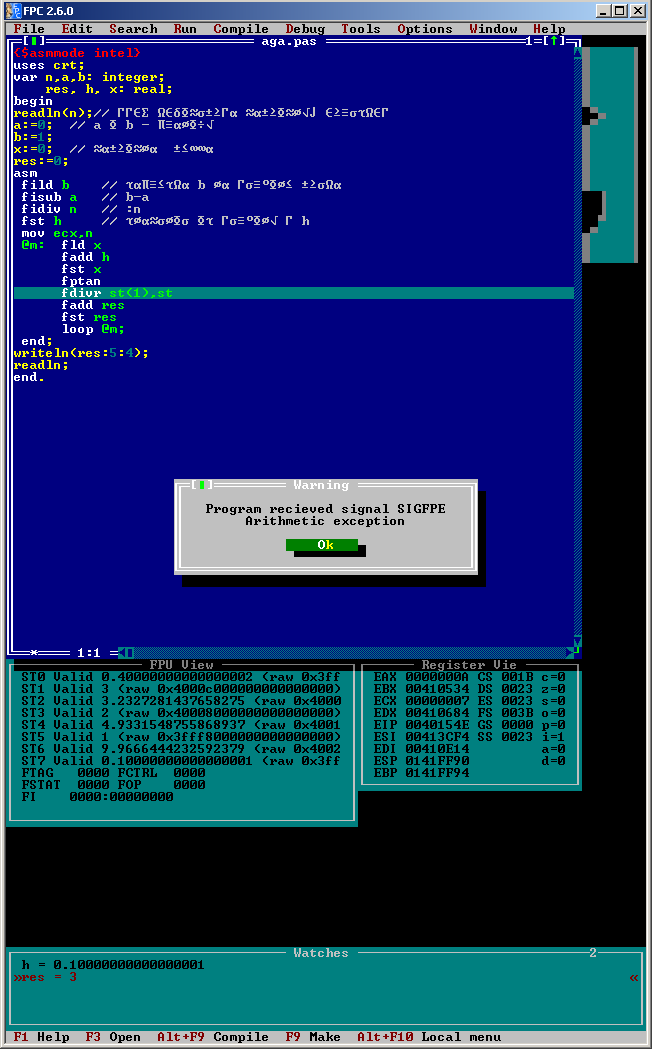 var n,a,b: integer; почему происходит деление на ноль? я же прибавляю перед делением h fld x |