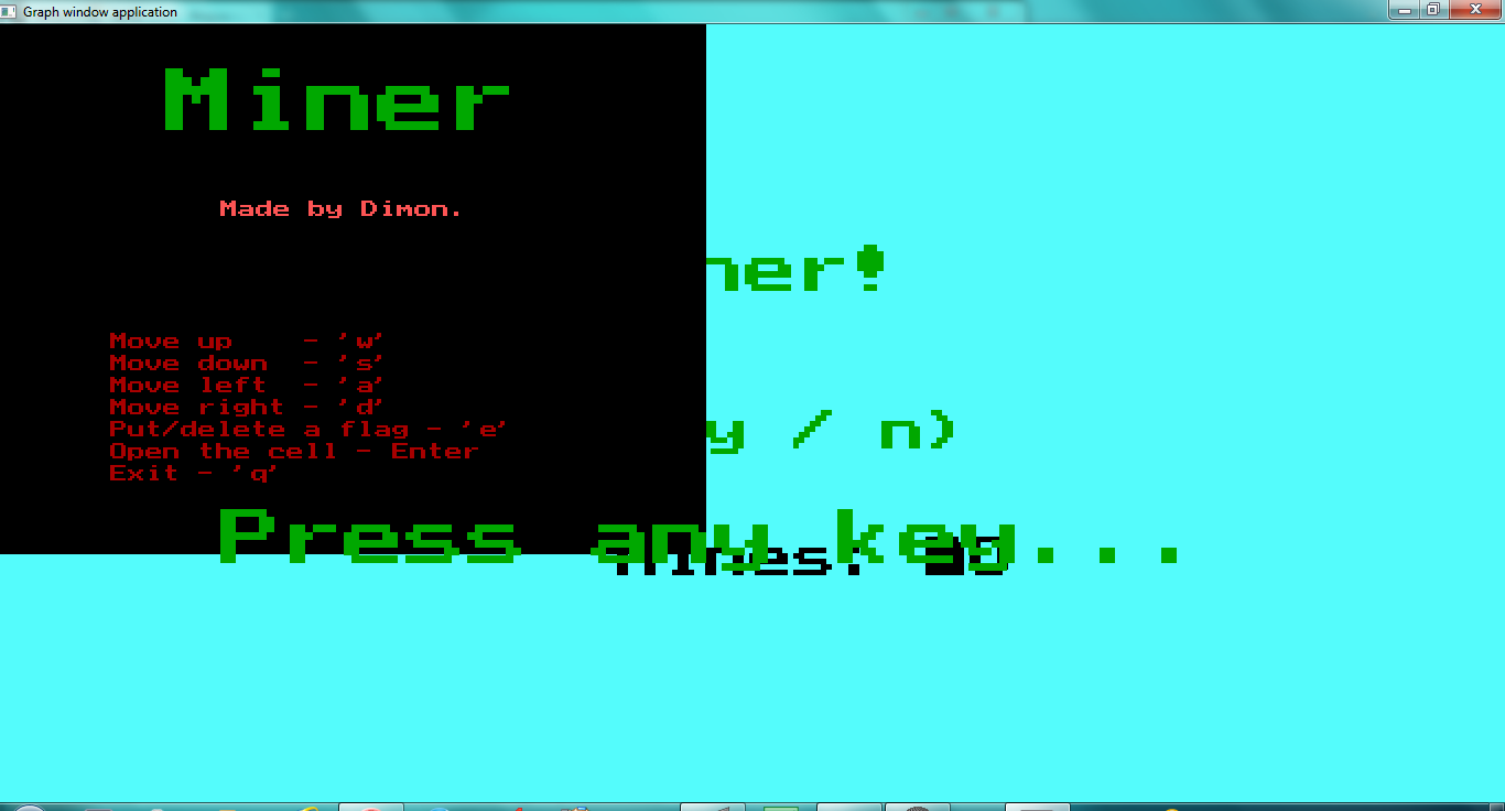 Впечатлило открытие пустых клеток. Одно но. Сразу после начала игры - забыл комбинации кнопок. Раз уж нет мыши - может добавить подсказку по клавишам? Ещё, у меня уже нет TurboPascal и я с небольшими изменениями запускал под FreePascal ({$apptype GUI} и wincrt). Огорчили артефакты от слов. По коду можно добавить замечаний, но ты продолжай программировать - всё само исправится. Подчеркну лишь, что по структуре кода программа всё глубже и глубже с каждой игрой "закапывается" в стек, когда из nachalo через ряд других процедур опять вызывается nachalo. Удачи! Эскизы прикрепленных изображений |