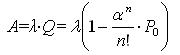Многоканальная СМО с отказами Рассмотрим систему с n каналами, на которые поступает поток заявок с интенсивностью λ. Интенсивность обслуживания заявок каждым каналом равна μ. Требуется найти предельные вероятности состояний СМО и показатели ее эффективности. Эта задача называется классической задачей Эрланга. Система S (СМО) имеет следующие состояния S0,S1,S2,…,Sx,…,Sn, где состояние системы, когда в ней находится ki заявок, так как k каналов заняты обслуживанием. Граф состояний СМО имеет вид: Поток заявок последовательно переводит СМО из любого левого состояния в соседнее правое с одной и той же интенсивностью λ. Интенсивность потока обслуживаний, переводящих систему из любого правого состояния в соседнее левое, постоянно меняется в зависимости от состояний. Например, если СМО находится в состоянии S2 (2 канала заняты), то она может перейти в состояние S1 (1 канал занят), когда закончит обслуживание либо первый, либо второй канал, т.е. суммарная интенсивность потока обслуживаний будет равна 2μ. Аналогично, суммарный поток обслуживаний, переводящих СМО из состояния S3 в S2, будет иметь интенсивность 3μ, т.к. может освободиться любой из трех каналов, и т.д. Формулы для предельных вероятностей состояний имеют вид: Эти формулы называются формулами Эрланга. Вероятность отказа СМО, т.е. вероятность того, что все n каналов будут заняты ("альфа" - интенсивность загрузки канала, см. выше): Относительная пропускная способность — это вероятность того, что заявка будет обслужена: Абсолютная пропускная способность: Среднее число занятых каналов: Запишем формулы Эрланга для двухканальной системы, т.е. когда n=2: ps: планировал-планировал сделать программу... не найду никак времени (( кто может, напишите... |