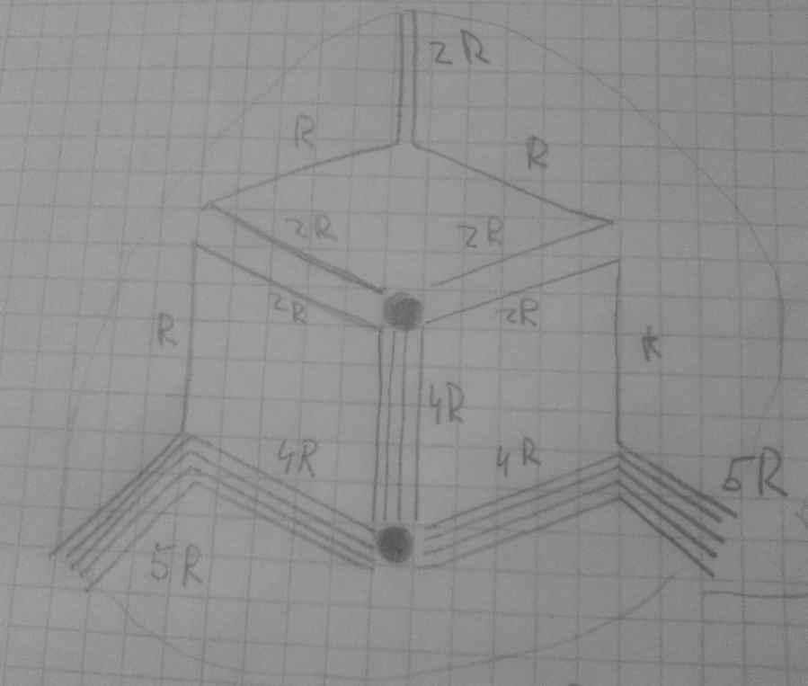 У меня похожая задача До того как наткнулся на ваше сообщение решил её следующим образом Тут вопрос в следующем: 1) Правильно ли? 2) И как обосновать, то что в точках, которые я указал стрелками, мы можем соединить схему? (т.к. я руководствовался соображениями симметрии Затем попытался решить вашим, представленным выше методом и вот, что получается Цитата Я думаю, что закончить решение уже несложно.. Поподробнее можно, если не сложно? |