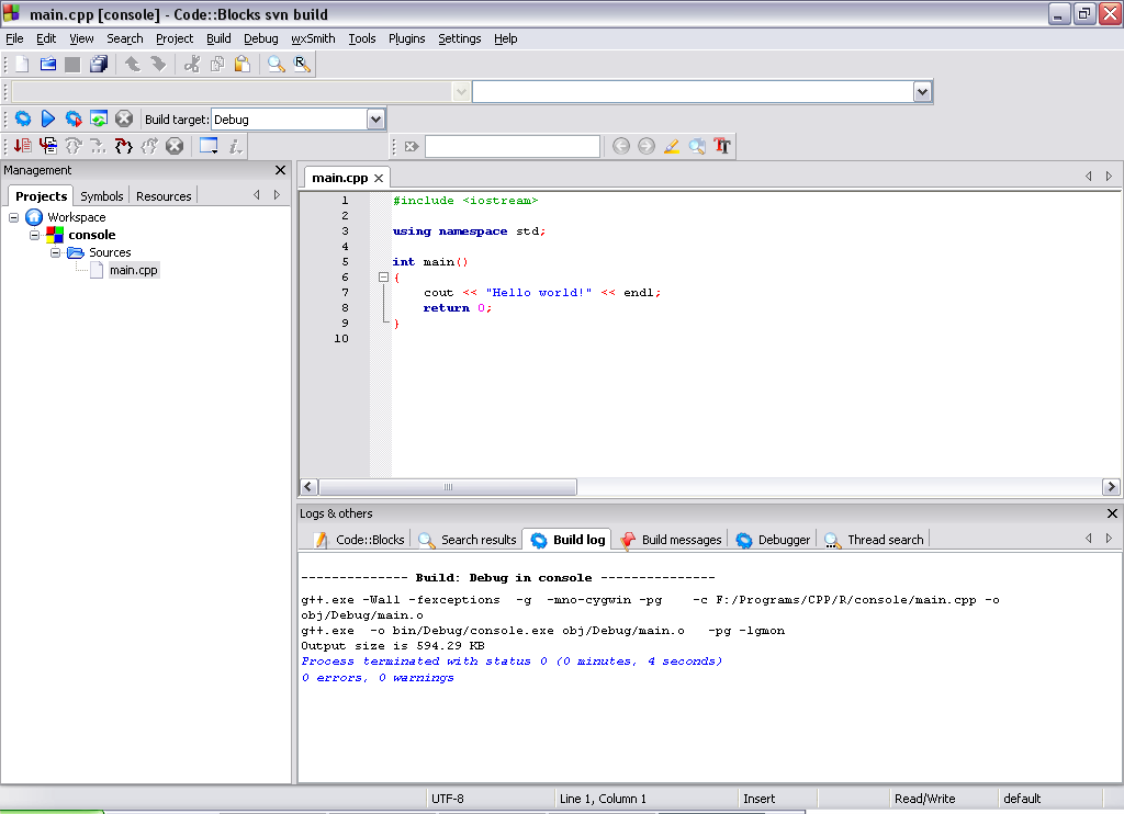 volvo Из бесплатного: Code::Blocks с компилятором gcc (с... 3.07.2009 18:58