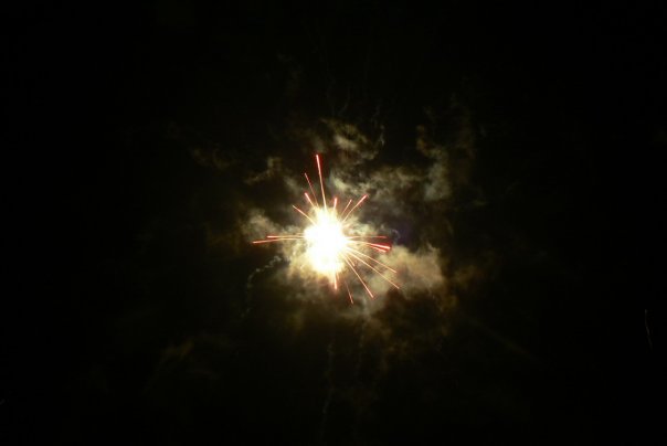 У меня есть пара фотографий с салютом,но это салют, который устраивали сами люди во дворе.