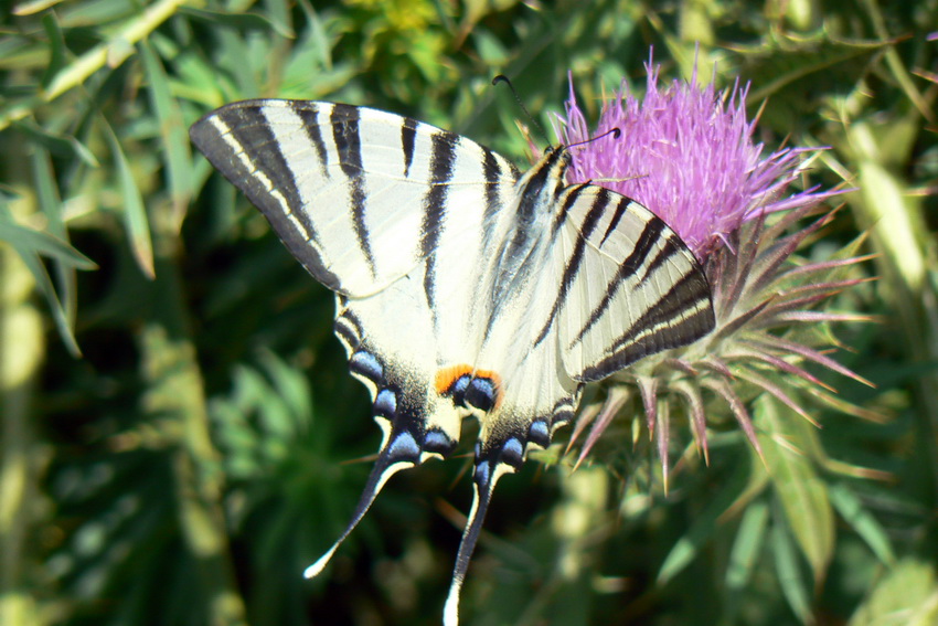 А еще хотелось бы показать бабочку, называется подалирий. Сначала я прочитала о ней рассказ у Корнеля Филиповича, он с такой страстью описывает её. А потом мы поехали на юг, когда я её там увидела, не поверила своим глазам. Она очень подвижна,поймать её нелегко. Но я согласна с Корнелем. Она прекрасна. Цитата И вот сейчас она была рядом со мной, у меня в комнате. Ползла неторопливо по краю стола, раскрывая и складывая свои чудесные крылья. Их материал был наивысшего качества, свежесть красок бесподобна. Безукоризненный крой, безупречная элегантность. Детали отделаны столь тщательно, будто подалирию назначалось существовать вечно...Бабочка шевельнула крылышками, расправила их - и я снова увидел желтую бархатную поверхость, покрытую мозаикой черных продолговатых пятнышек и, точно драгоценностями, украшенную красными и голубыми крапинками. Увидел еще раз идеальное целое,заканчивающееся двумя похожими на ласточкин хвост острыми выростами, которые, кажется, говорили: вот завершение формы и другим оно быть не может, поскольку все другое было бы хуже. |