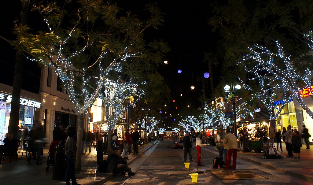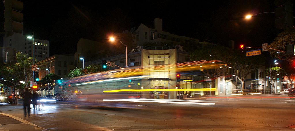 а я люблю богомолов. Богомол действительно классный. Я недавно тоже снимал богомола - громадного, с ладонь с ногами - но ничего не вышло (темно было). И бабочка замечательная, только нужно кадрировать.. Не нужно сохранять лишнее только потому, что оно попало в кадр. Вот, посмотри - разве так не лучше? учитывая. конечно, что такие вещи надо делать с оригинала.. Кадр, конечно, квадратный, он наилучшим образом сочетается дигональностью сюжета. Помимо кадрирования, зарезал гамму на 0.6 и сатурейшн на -64. Цветность пришлось убрать, потому что шорты (я не спорю, что они замечательные)) перехватывали внимание. Это, конечно, все мое личное мнение)). А твое мнение, Ellsa? Я переведу стрелки с насекомых на съемки ночного города. Сегодня вот решил попробовать как-то спонтанно. Штатива с собой не было (точнее, не хотелось с ним возиться), но кругом же полно мест, куда пристроить камеру. Снимки подобработаны немного (в примерно так: гамма 1.3, контраст 25), плюс кадрировано, чтоб убрать пустоту, она была явно лишней, потому что я хотел показать именно жизнь - то, что видяь глаза. А глаза на небо сверху и асфальт под ногами никак абсолютно не реагируют, они хватают свет и движение. Перекресток бульвара Санта-Моника и 4-й улицы: Третий Променад: На последнем снимке как раз попали русские акробаты, отец и сын (в красных штанах). -------------------- я - ветер, я северный холодный ветер