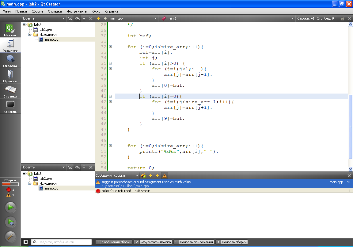 есть задание с формированием массива: Разместить все элементы с положительными значениями в левой части массива, нули - в правой, а элементы с отрицательными значениями - между ними; вот я прохожу по массиву и путем сдвигов формирую новый масив