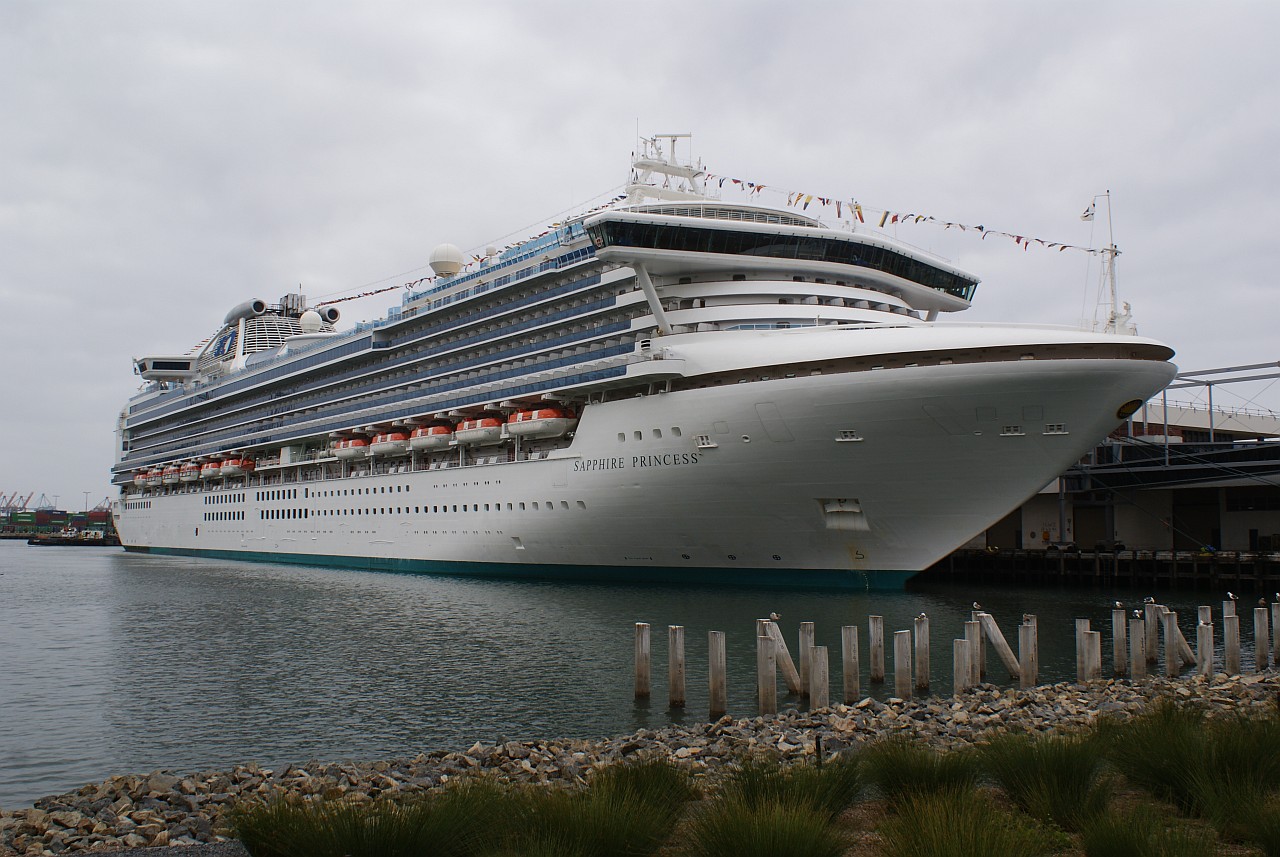 Sapphire Princess демонстрирует себя во всей красе в порту ЛА, Long Beach. Ну, не красавица, а??.. Я насчитал 11 дек.. или 12.. считайте сами )). -------------------- я - ветер, я северный холодный ветер