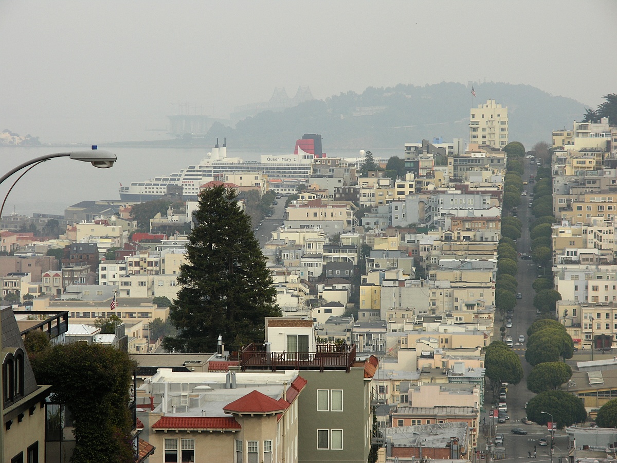 Не знаю чем вам не нравится ваша работа. Стыки еле еле видны. Это не моя заслуга, это ICE. Она действительно неплохо работает, одно нарекание: мало опций.. Я имел в виду качество схемки в основном - все криво. Верх и низ пришлось отрезать..Панорама смотрится отлично! Спасибо за моральную поддержку )). СФ просто не может может выглядеть плохо.Цитата О красоте города мнения не разделяю. Уж слишком он квадратный и одинаковый. Квадратный? Наклон: Я понимаю, sheka, что под квадратностью ты понимал другое. Можно возразить и по тому (хотя, конечно, он не радиальной структуры, как Москва, например). Есть и косые улицы - не знаю уж, насколько они добавляют красоты.. Если приглядишься - увидишь )). Одинаковый? В нем нет и двух одинаковых зданий (если только они не входят в ансамбль). Каждое здание - песня, как небоскребы, так и маленькие жилые дома.. Каждая часть его колоритна по-своему: и Сити, и Чайна-таун, ессно, и Фишермэн Верфь.. Город довольно компактный (по сравнению с ЛА, скажем), но он как бы возглавляет Бэй-Эреа (простите, не стал переводить названия, хотя они несут смысловую нагрузку). Через бухту - Окланд и Беркли (туда ведет левый мост, двухэтажный; один этаж - в одну сторону, другой - в другую, каждое направление в 5 рядов.), на юг - Силиконовая Долина.. Bay Bridge: Вот еще один снимок, тоже не очень удачный, но тут можно сделать вывод о рельефе - это раз, а второе - видна часть Queen Mary II. Это ее первый заход в СФ, на тот момент она была самым большим пассажирским лайнером. Вид с холма в сторону причала: А на следующем снимке - она же на подходе к порту, в окружении встречающих яхт и толп народа на берегу. Виден тот самый Golden Gate Bridge, который не получился на панораме (построен в 1937). Там произошел некий интересный момент: когда она была мили за две до моста, возникло подозрение, что она может его задеть (высота пролета - 67м). При этом останавливать ее было уже поздно. Движение по мосту было прекрыто, все следили с замиранием сердца.. Все обошлось )). Queen Mary II перед Golden Gate Bridge: Я не просто так назвал СФ неповторимым. Там есть такие вещи, которых действительно нет больше нигде. Например, система т.н. cable cars - это типа как трамвай на тросе. Она была открыта в 1873г.! Да, в XIX веке. Линий было больше десятка, каждая протяженностью в несколько миль. Она почти полностью разрушена землетрясением (как и весь город) в 1906г. .. Но потом восстановлена )). Сейчас функционируют две или три линии - для туристов, конечно.. Обратите внимание на "третий рельс" в середине. Это на самом деле канавка, где проходит трос, на котором его тянут. Cable Car: Я понимаю, что всего не разглядишь вот так, на снимке. Но все же не стоит делать скороспешных выводов )) -------------------- я - ветер, я северный холодный ветер