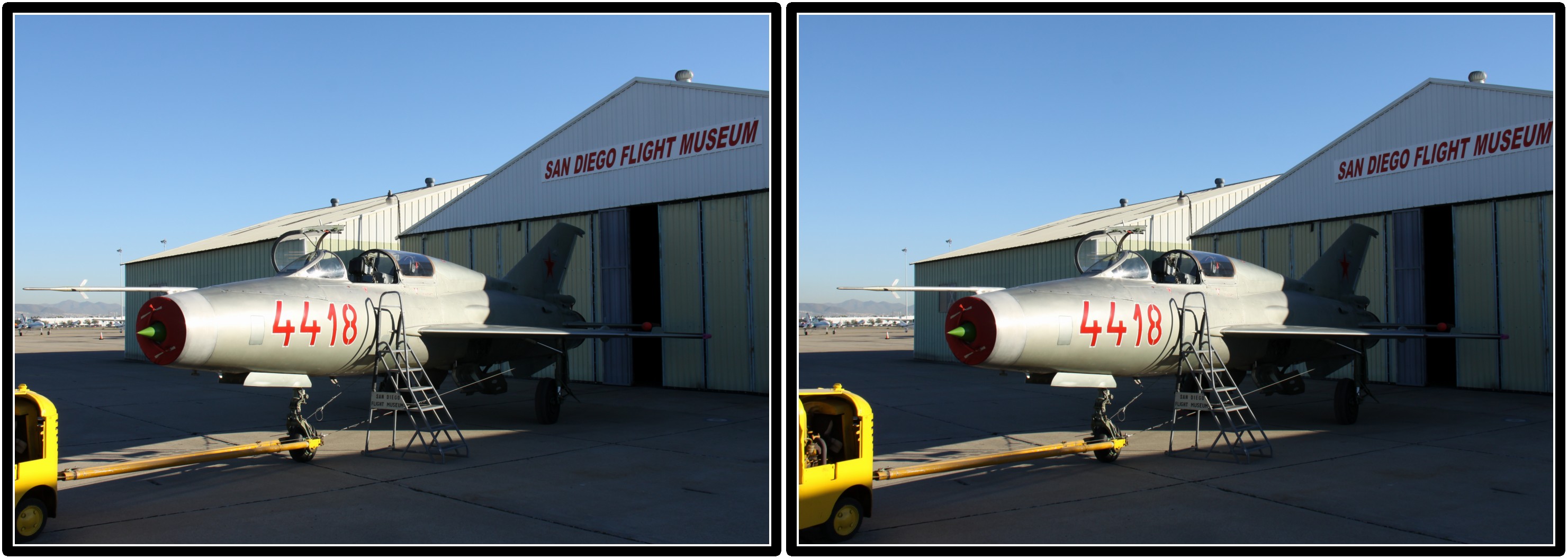 МИГ-21 (он попал туда через Чехию) В регистре пишут, что его произвели в 1967 году для Венгрии. И что на нем сейчас иногда летают настоящие космонавты!!! А также лично сам директор музея. И что этот МИГ сейчас продается, за чисто номинальную цену в $280 000. Второй - ЯК-52. Это не экспонат музея, кто-то просто прилетел на нем заправиться Это, наверное, был Доктор Петерсон, а может, его приятель, Доктор Бенфилд, оба хирурги из города Империал Бич, они владеют этим самолетиком пополам |