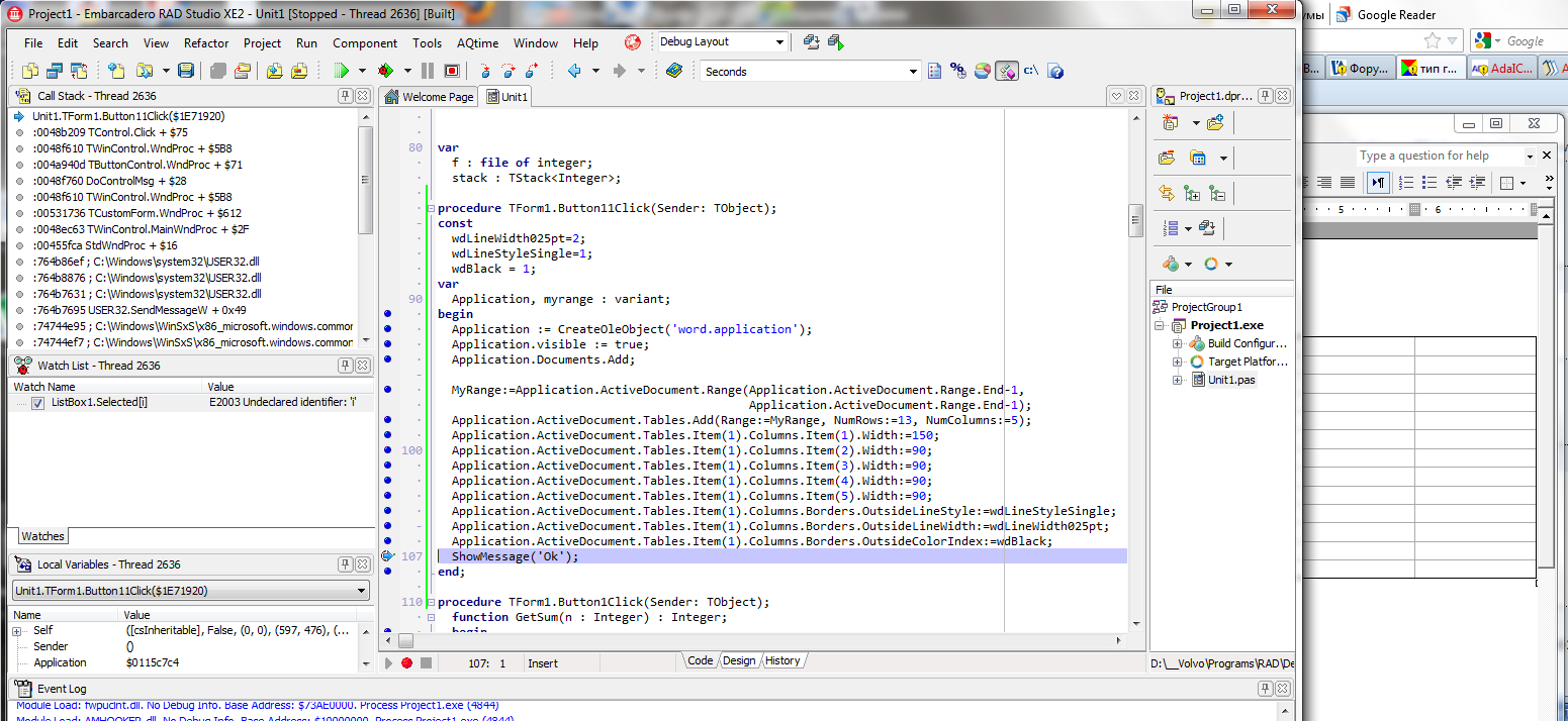 Не верю: procedure TForm1.Button1Click(Sender: TObject); Добавлено через 4 мин. procedure TForm1.Button1Click(Sender: TObject); аа, блин, забыл Application.ActiveDocument.Tables.Item(1).Columns.Borders.OutsideLineStyle:=wdLineStyleSingle; Добавлено через 1 мин. спасибо большое |