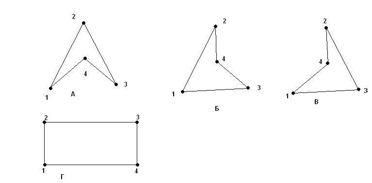 для случая «Б» верна диагональ только 1– 4 (а, не 2 – 3), для случая «В» верна диагональ только 3– 4 (а, не 1 – 2). Как можно распознавать такие четырехугольники (случаи «А», «Б», «В») Сообщение отредактировано: Andy - 18.11.2004 18:56 Эскизы прикрепленных изображений |