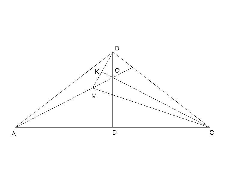 Не сердитесь, что я вынимаю на свет Божий дела давно минувших дней.. Я совершенно случайно набрел на этот тред, и меня заинтересовала задача. После получаса размышлений над ней за чашкой кофе я просто полюбил ее. Лена, не судите строго ее автора - он явно незаурядный человек, и спасибо ему за удовольствие подумать. Задача из тех, где нужно искать не общие принципы, а совпадения частных параметров. Как только это поймешь, все становится на свои места. Достаточно лишь привлечь побольше данных - в данном случае провести пару лишних линий (которые напрашиваются) и вычислить несколько углов. Потом все это сопоставить. И _очень_важно_ сделать _хороший_ чертеж! Я не пожалел усилий, хотя неточности могут быть, ибо транспортира под рукой не оказалось. Но это не важно - чертеж должен быть не идеальным а _достаточно_ хорошим. Итак, решение (кратко). Опустим высоту из В. Продолжим АМ до пересечения с ней (т. О). Угол ВМО вычисляем, как внешний в тр.АВМ, он равен 30. Угол МВО равен разности половины угла АВС и угла АВМ - получаем тоже 30. Следовательно, тр. ВОМ - равнобедренный. Теперь проводим отрезок СК через точку О. Тр.АОС - равнобедренный. Следовательно, угол ОСА = ОАС, а последний легко вычисляется из начальных данных и равен 30. Т.о. угол КВО = DCO, ибо оба по 30, и у нас есть два равных угла в треугольниках КВО и DCO. Заметим теперь вертикальные углы КОВ и DOC и сделаем вывод, что вышеупомянутые треугольники подобны. Но тогда угол ВКО - прямой (ибо равен углу CDO), и отрезок ОК является высотой в равнобедренном тр.ВОМ и, следовательно, серединным перпендикуляром к ВМ. Но точка С лежит на его продолжении, и следовательно ВС=МС. Вот мы и выводим, что тр.ВСМ - равнобедренный! Далее все просто.. Может, не самая изящная задача, но у нее есть вполне определенный смысл. Смысл в том, иногда "случайные" совпадения весьма важны для решения. И если найти зацепку (в данном случае - равенство углов КВО и OCD), то жизнь становится не так и плоха.. Лена - удачи вам и новых встреч! PS Хороший чертеж может и навредить, если быть не очень внимательным. В нашем случае угол КВО иожно принять прямым априори, хотя этот факт нуждается в доказательстве. Сообщение отредактировано: lapp - 3.12.2005 6:06 Эскизы прикрепленных изображений -------------------- я - ветер, я северный холодный ветер