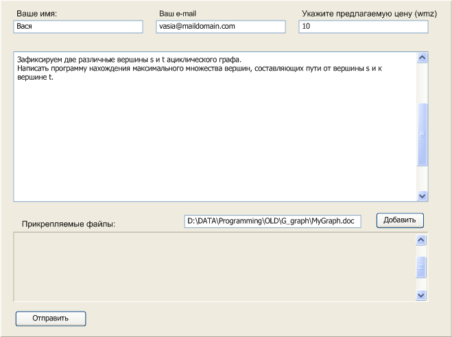 Для того, что бы пользователь сразу понимал, что от него нужно... Добавь сроки исполнения отдельным полем (до такого-то числа..) То, что мыло видно всем-всем - нехорошо... Альтаир, а как с предложениями все проводить через Форум? Согласен? Сообщение отредактировано: lapp - 13.05.2006 12:08 -------------------- я - ветер, я северный холодный ветер