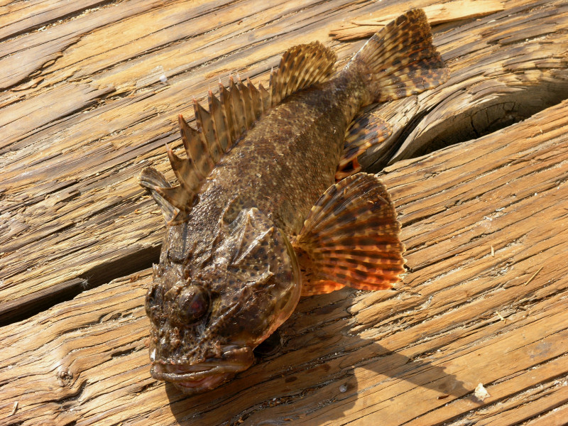 Про первые два кадра хотел спросить, что это, но потом передумал - довольно просто отгадать. Но кто хочет, может сначала посмотреть картинки, а потом уже подписи. Дальше идет ответ - и не только.. Это подстилка для лежания, которую присыпало песком - был приличный ветер, поземка из песка. А на втором - рыбки анчоусы, я их снимал сверху, с пирса, до воды метров шесть.. Тут бы тоже надо поляризационный фильтр.. Прикуплю в ближайшее время. Следующий кадр понятен без слов - просто галька в песке. Почему-то я с таких картинок балдею, как хохол с сала, у меня их мульон.. Конечно, они много теряют от ужатия в жипег 800х600.. А на последнем - калифорнийская рыба-скорпион (как сказал рыбак). Ее шипы ядовиты. Рыбак брал ее исключительно пассатижами. Но говорил, что очень вкусная. Эх, жалко рыбку.. PS сколько же я намучился, постя этот мессадж - сплошные сбои! Все, спать.. -------------------- я - ветер, я северный холодный ветер