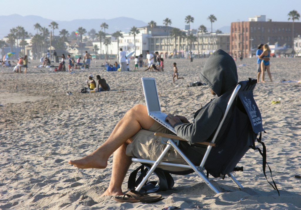 Снимайте больше людей! Люди ведь так уязвимы в этом мире от ударов судьбы, никто не знает, что ждет нас завтра, через минуту... Фотография - это память. Если рассматривать фотографию как память, то это для семейного альбома.. А вообще, людей снимать трудно. Особенно это заметно в "свободных странах", где каждый дрожит за свою pivacy.. Так что приходится ограничиваться тем, что люди могут попадать в кадр при съемке чего-то еще. Или снимать скрыто.. Вот два моих примера и того, и другого. Все сделано на Венис-Бич в июле. Второй мне показался забавным - не часто пока еще увидишь людей с ноутами на пляже.. -------------------- я - ветер, я северный холодный ветер