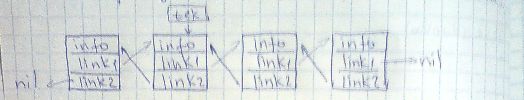 Наработки: tek:=tek^.link1; // переход влево tek:=tek^.link2; // переход вправо type lnk=^list2; list2=record; info:integer; link1,link2:lnk; end; var tek,buf:lnk; procedure delete_from_list; begin buf:=tek; if tek^.link1<>nil then tek:=tek^.link1 else tek:=tek^.list2 if buf^.link2<>nil then buf^.link2^.link1:=buf^.link if buf^.link1<>nil then buf^.link1^.link2:=buf^.link2; dispose(buf); end; Сообщение отредактировано: shnurik_sh - 30.11.2009 22:28 Эскизы прикрепленных изображений |