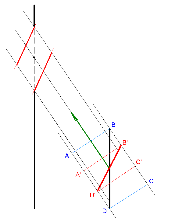 так, надеюсь, лучше? Да, так лучше Итак, задачу можно считать решенной. Первым идею высказал Bokul, но завершил решение zZz. Но, если честно, я не вполне уверен, что все поняли решение, так что позволю себе привести некоторое пояснение (опять тот же корень Итак, действительно: слова о том, что поперечная скорость мала и ни на что не повлияет - чистейшей воды попытка сбить с толку. Нужно рассматривать полную скорость. Полная скорость не равна простой векторной сумме продолной и перпендикулярной скоростей (в СТО свои законы сложения скоростей, об этом позже), но нас это сейчас не интересует. Главное, что она направлена в дыру. То есть будем считать, что линия вектора скорости, проходящего через центр стержня, пройдет точно через центр дыры. Как будет происходить сжатие? Для того, чтобы это легче было себе представить, будем считать, что наш стержень есть диагональ (BD) некоего прямоугольника, одна из сторон которого параллельна скорости (ABCD). Под действием Лоренцева сокращения он сожмется в A'B'C'D'. Соответственно, положение стержня теперь будет B'D'. Главное, на что следует обратить внимание тут, это то, что стержень не просто уменьшился в длине - он повернулся! Причем, повернулся не так, чтобы было проще пролезть в дыру, а как раз наоборот Красные линии у дырки - положение стержня при подлете, причем я утолщил среднюю часть (изначально равную размеру дырки), которая прошла бы в дырку, если бы края не помешали. Допустим, что так оно и есть, стержень действительно был равен по длине размеру дыры. Тогда он проходит в нее - как в нормальных условиях, так и в рассматриваемом случае косого подлета на субсветовой скорости. Но, поскольку его размер равен дыре, он слегка касается краев. То есть происходят два события: касание концом B и касание концом D. В нормальных условиях эти два события происходят одновременно. А при косом подлете на большой скорости? Мы видим, что сначала происходит касание концом D, а потом касание концом B (порядок мог бы быть обратным, если бы стержень летел с другой стороны). Это та самая относительность одновременности, которую я упомянул в самом начале (кажется, в первом ответе в эту тему). Как видите, факт очень простой, хотя и вызывает некоторое недоумение. Если интерес слушателей не иссякнет, мы еще обсудим это более подробно.. -------------------- я - ветер, я северный холодный ветер