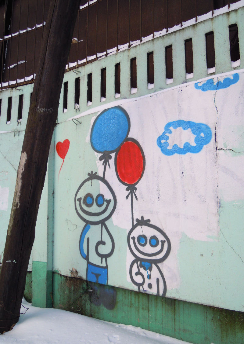 Добрые дяди снова аккуратно побелили забор Да, аккуратизм этих добрых дядь будет воспет в балладах )). Собственно - на уже воспет!Цитата Это так нехарактерно для московских заборов. Безумно мило. Явно не дилетант рисовал. Очень уверенная линия. И пропорции не пострадали (при весьма немалом размере). Это непросто (можете попробовать)).Цитата с ним идут еще два мрачных живых существа, маскирующиеся под синие воздушные шарики! Замечаете: на картинке ветер дует в двух (противоположных) направлениях... Наверное, это типа подпись художника: два голубых пятнышка. То, что они текут, возможно, тоже необходимый ее элемент.А на шарик можно посадить мышей.. или хатифнатов.. им там будет удобно. -------------------- я - ветер, я северный холодный ветер
