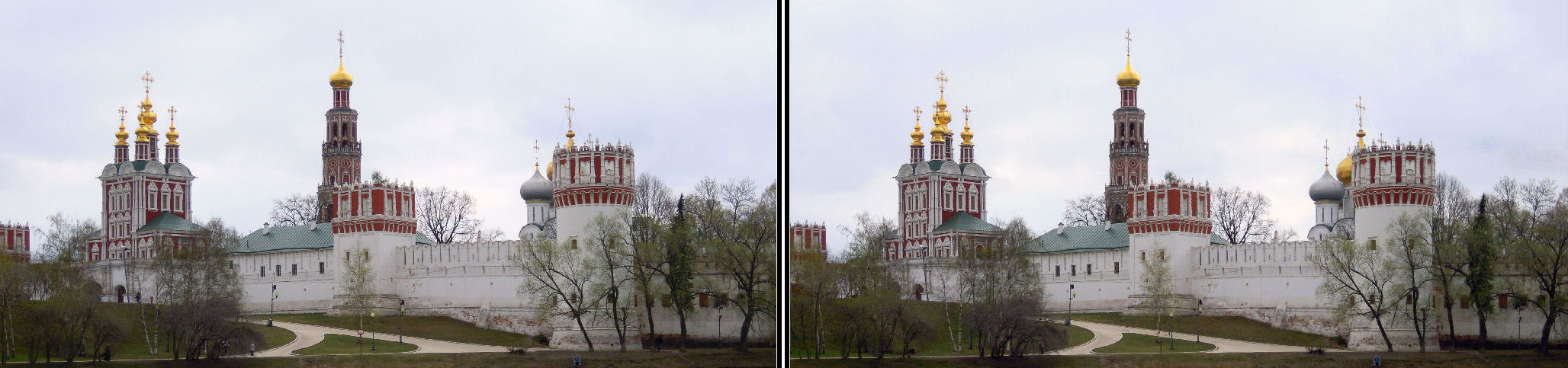 Устыдившись, решила реализовать хотя бы одно стерео, и тут же потерпела крррах Проблема в том, что изображение в результате оказалось состоящим из нескольких совершенно плоских планов. Хотела продемонстрировать зеленую дымку свежих листьев, в жизни смотрелось так симпатично... Там еще были забавные утки цвета апельсина, но моя камера не успевала их фиксировать - слишком подвижные были утки. Спасибо, totally Welcome to 3D club, +1! Ох, если бы ты знала, сколько крррррахов потерпел я (и продолжаю терпеть). Как и в любом деле, в 3D-съемке нужен опыт (плюс к опыту обычной съемки). Я открыл для себя уже много всяких тонкостей - на книгу не хватит, но на статью - точно. И это далеко не конец! Мне интересно учиться на каждом кадре. Я пытался начинать говорить обо всем таком тут, но разовора не получается, а произносить монологи мне как-то не хочется.. Rian прав, нельзя половину пространства в стереоснимке отдавать на то, что явно не сведется. Я добавлю еще, что нужно сокращать по всякой возможности время между кадрами. Тут оно явно больше минуты (судя по положению людей). За такое время и облака успели уйти. Полный разбор я, наверное, делать не буду.. Мне очень приятно, что я еще одного человека увлек )). И Новодевичий как всегда великолепен. Еще раз - спасибо, totally! -------------------- я - ветер, я северный холодный ветер