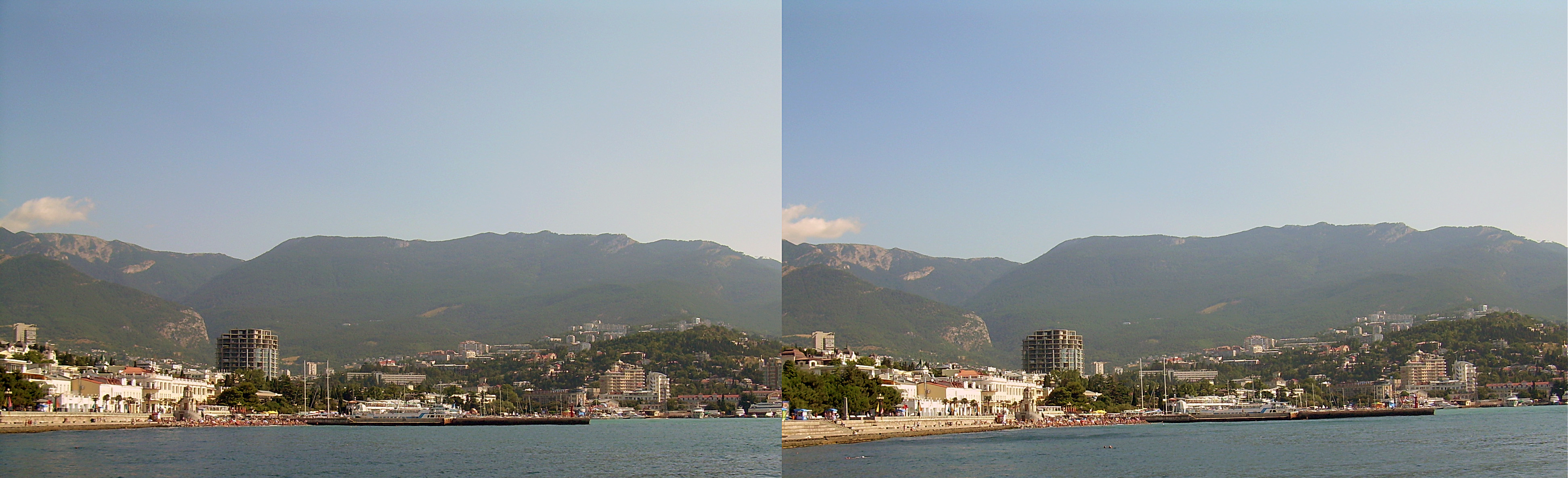 корабль кажется называется аида в Левадийском дворце на набережной вид на город с моря я вот какую прикидку сделал по поводу того с какой базой надо снимать человеческие глаза находясь на расстоянии 10см (ну примерно) чувствуют объем до 10 м сделав стереопару на расстоянии 1м фотография просмотривается до 100м (дальше плоское) стереопара 100м дает глубину 10 км Сообщение отредактировано: Rian - 1.08.2011 13:17 -------------------- Objective-C, Unity3d