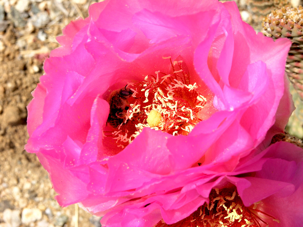 Несмотря на то, что цветы сами по себе красивы, передать это на фото совсем не просто. Особенно цифровиком - вот именно тут понимаешь, что цветопередача у них еще прихрамывает.. Эти снимки я сделал в национальном парке Джошуа Три (я уже выкладывал фото оттуда в "Стерео"). Кактусов там несколько видов. У меня есть фото еще по крайней мере двух - со временем выложу. Наслаждайтесь и критикуйте! Здесь просто цветущий кактус а тут - с пчелой: А здесь фрагмент второго кадра: -------------------- я - ветер, я северный холодный ветер