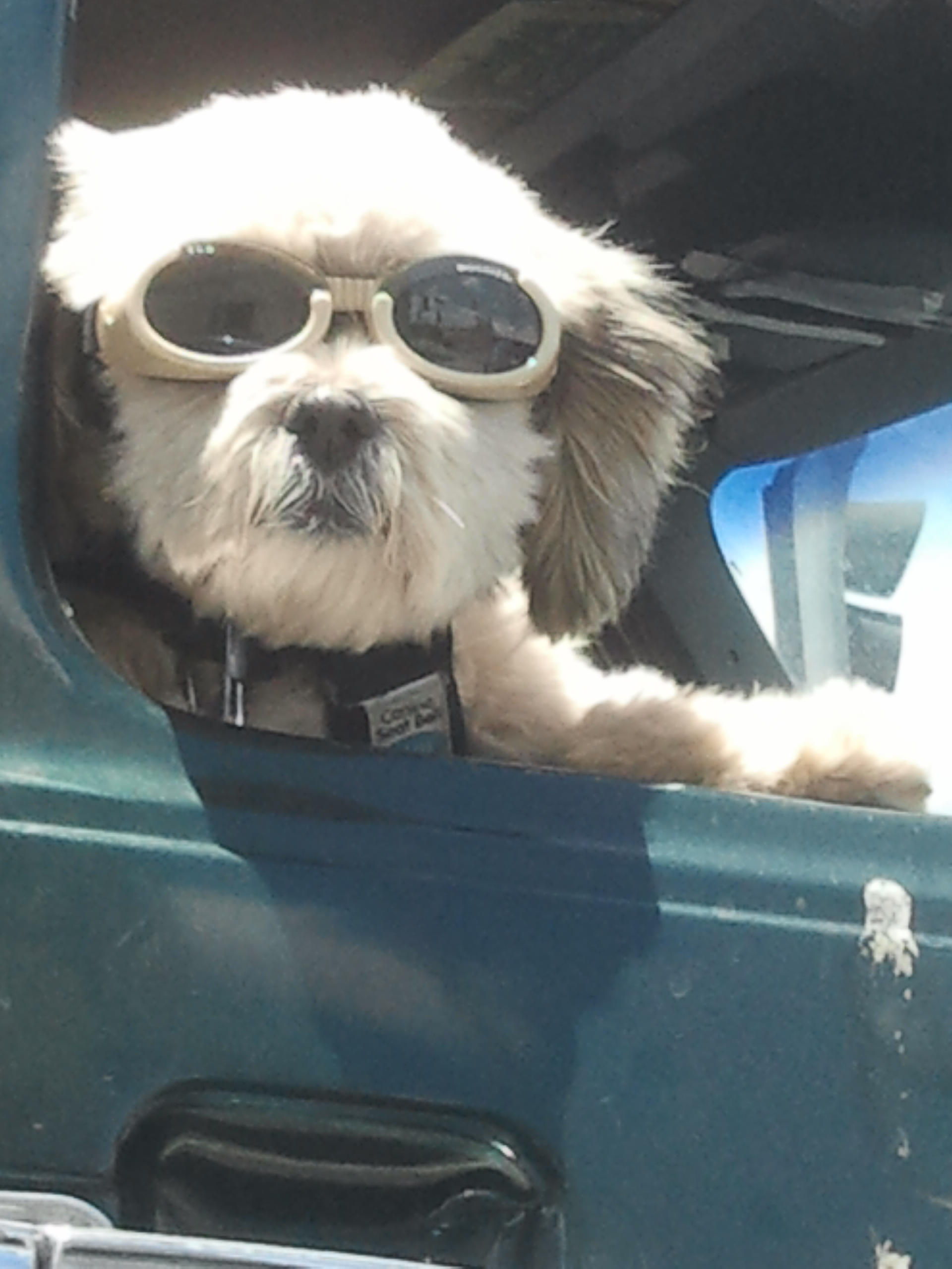 Я уже публиковал про то, как ездят с собаками. И про собак в очках тоже. А это - два в одном )). Удалось снять на светофоре. Я всегда смотрел и думал - глаза у собак вообще по жизни слабые, а тут еще ветер, пыль, солнце.. Добавлено через 5 мин. Она еще и пристегнута - заметили? )) -------------------- я - ветер, я северный холодный ветер