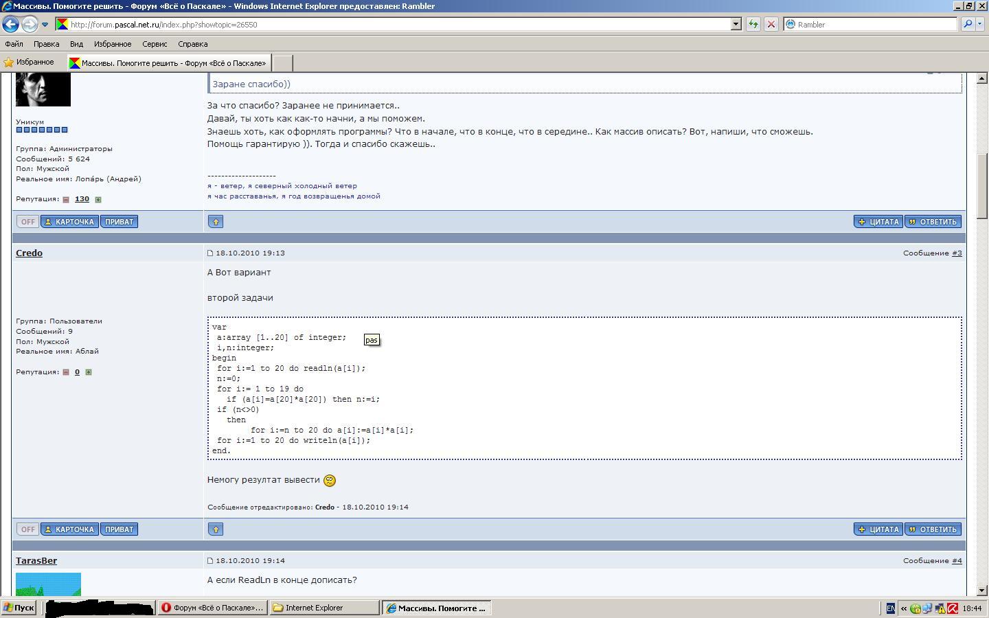 Такая проблема: после переустановки браузера на IE 8 не вижу подсветку содержимого в тэге [code=pas][/code] (подсвечивалось зеленым, синим), перестали работать кнопки "Спойлер" и "+" "-" (в повышении репутации). Может быть какие-то еще кнопки не работают, пока не заметил. Нажимаю - ничего не происходит. С чем это может быть связано? Что изменить? Сообщение отредактировано: Вячеслав Людской - 12.09.2010 17:53 -------------------- Само знание есть сила
