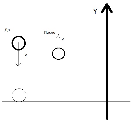 Мячу сообщили скорость v0, направленную вертикально вверх. Чему равна высота, на которой Wп=Wk ? mgh=mv2/2 2gh=v2 2gh=(v0 - gt)2 Что делать дальше, ведь время у нас не дано? mgh=mv2/2 2gh=v2 (1) т. к. тело движется вертикально вверх равноускоренно => h=(V02-V2)/2g => V2=V02-2gh (2) Из (1) и (2) следует 2gh=V02-2gh => 4gh=V02 => h=V02/4g Добавлено через 16 мин. № 39 Маленький шар массой 100 г, движущийся горизонтально со скростью 10 м/с, испытывает абсолютно упругое столкновение с вертикальной стеной. Чему равно изменение импульса шара в результате столкновения? Столкновение абсолютно упругое => скорость после отскока тоже 10 м/с => изменение = 0. Ответ 2 Н * с. Что не так? Ваше решение не верно. Из рисунка видно, что проекция V на ось Y До = -10 М/с После: = 10М/с => изменение импульса= m(Vдо-Vпосле)=-2mV=2Н*с Сообщение отредактировано: Freedom - 27.11.2010 19:07 -------------------- From ZERO to HERO