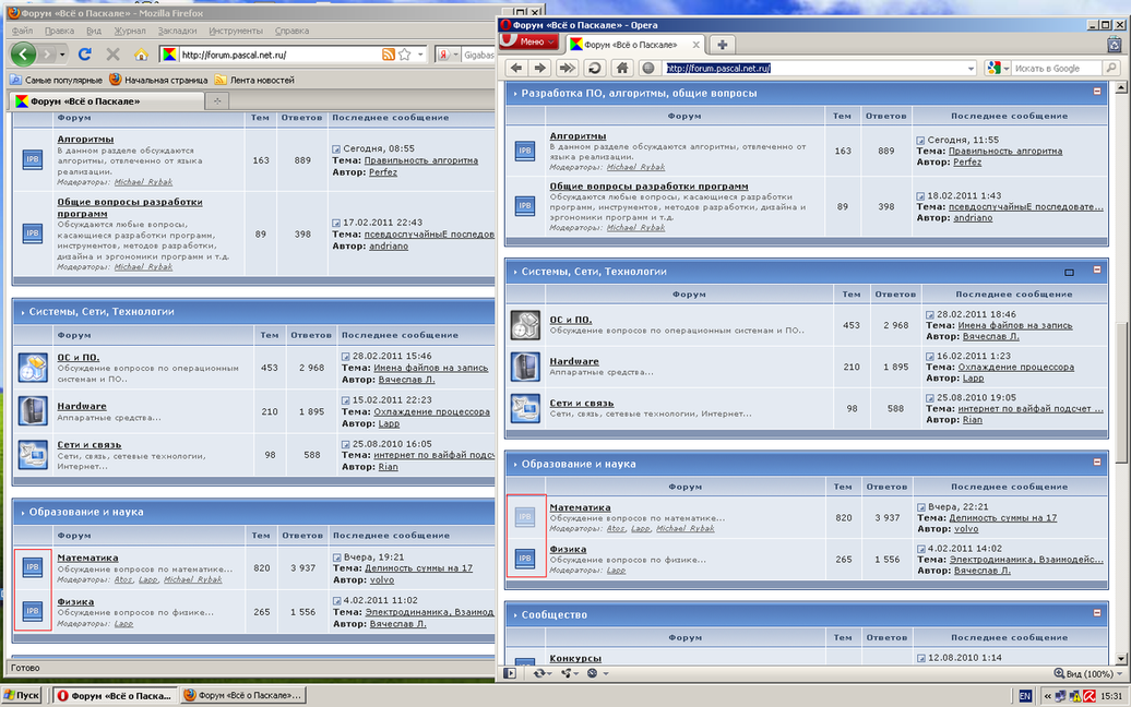 А куки в Опере и в FF - разные. Значит, Оперой ты тему в Математике уже читал, а Фоксом - еще нет. Прочитай (или просто нажми на значок, это отметит форум как прочитанный) - в FF он тоже будет тусклый. |