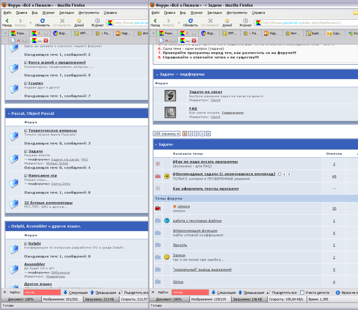 Цитата Хотя тусклость обоих значков предполагает, что все темы и в Assembler, и в Математика являются прочитанными. Тусклость значка предполагает, что в разделе все темы прочитаны естественным образом, или раздел был отмечен прочитанным насильственно. При этом совершенно необязательно, что все темы тоже будут помечены как прочитанные. Вот, к примеру, что у меня сейчас наблюдалось:Как видишь, раздел Задачи отмечен как "прочитан" (ну да, я поставил себе другие значки, но это ничего не меняет, когда раздел непрочитан, значок папки - красный). Заходим внутрь, и что видим? Есть тема, которую я еще не читал. Если ты хочешь вообще все сообщения форума пометить как "прочитано" - на главной странице в самом низу есть ссылка для этого: "Отметить все сообщения прочитанными" |