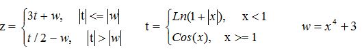 Замечание: Программа должна содержать ввод известных величин с клавиатуры, вычисление неизвестных с использованием раздела Function и вывод результатов вычислений на экран. Задание 2. Ввести x и вычислить z: Задание 3. Вычислить: Задание 4. Построить таблицу функции «y» на отрезке [a;b] с шагом «h», вводя соответствующую функцию в разделе Function: |