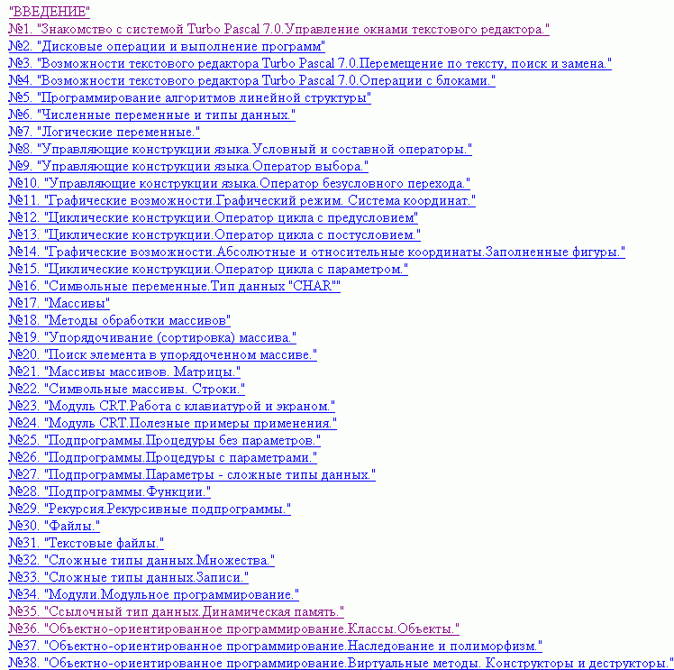 5. Самое главное - это раздел теоретический, т.е. никаких задач и программ (за исключением небольших фрагментов) - для этого есть отдельный раздел!