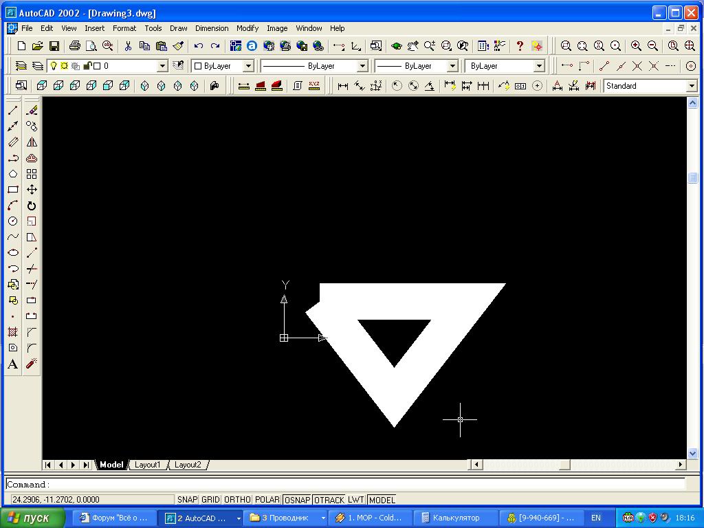>>Треугольник полилинией, шириной = 5 так и должен выглядеть ? что за осколок слева ?