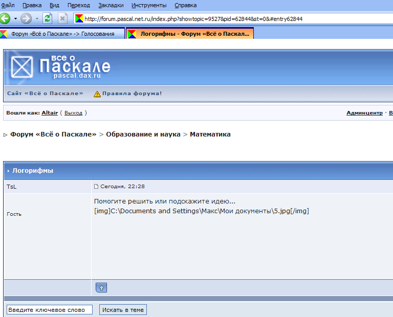 На вопросы по программированию, физике, математике и т.д. в аське и личке не отвечаю. Даже "один-единственный раз" в виде исключения! |