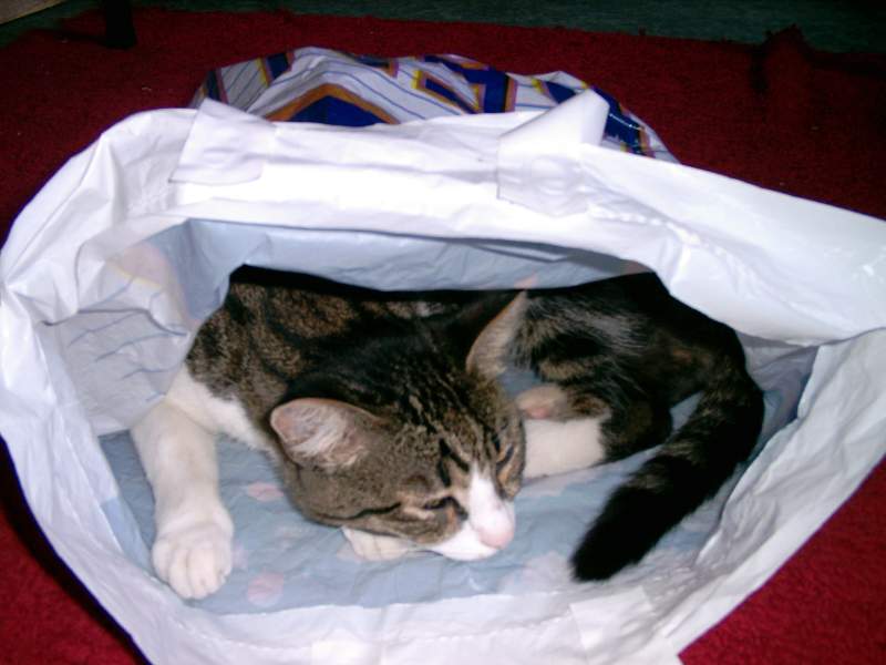 а мой любит в целофоновый пакет залезть и в нем бегать по дому