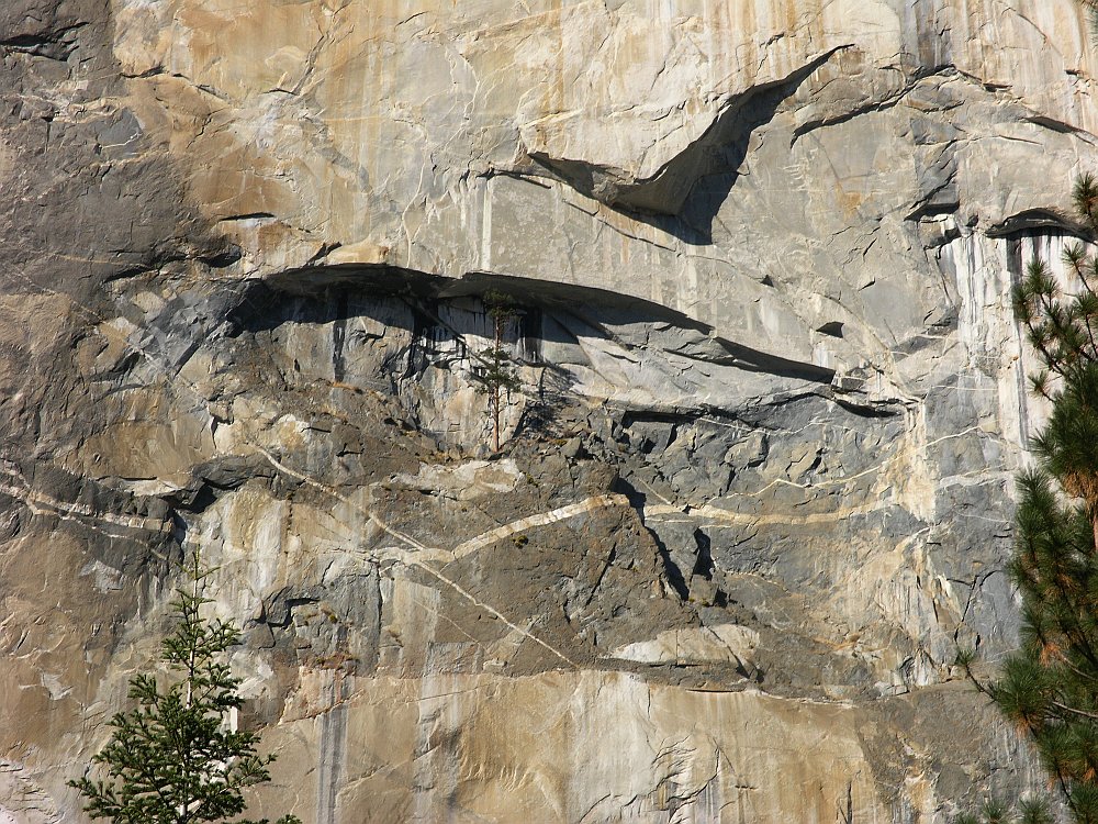 Так значит камешек на фото был не для композиции, а для лучшего представления розмеров шишки? ... Как вы все понимаете, снимал я задооооолго до того, как подумал об этой загадке. Просто она лежала (и я ее снял, не трогая), а вокруг было полно еще, но те все же были поменьше.. Моя дочь захотела ее взять с собой (разрешается взять с собой шишек, сколько влезет в один супермаркетный пакет) и стоически везде носила, а потом увезла в Москву. Больше мы таких громадин не встречали - я посматривал специально, но не очень тщательно. Средний размер составлял где-то 0.5-0.7 этой. Это либо сосна, либо кедр, но точнее сказать не могу. Все это происходило все в том же Йоземити (где Эл Капитал из предыдущей загадки). А это часом не "шишка-рекордсмен", или еще чтото в этом духе? И вообще это ведь не с обычной ели или сосны? Кстати, я нашел у себя еще одно фото, которое имеет отношение к первой загадке. Вот: Вы видите сосну под "козырьком" в центре кадра? Вполне таких немалых размеров деревце, не правда ли? Не удержусь от вопроса.. А вообще, я подумал, что вот такаие загадки можно сделать викендной традицией. Как вы думаете? -------------------- я - ветер, я северный холодный ветер