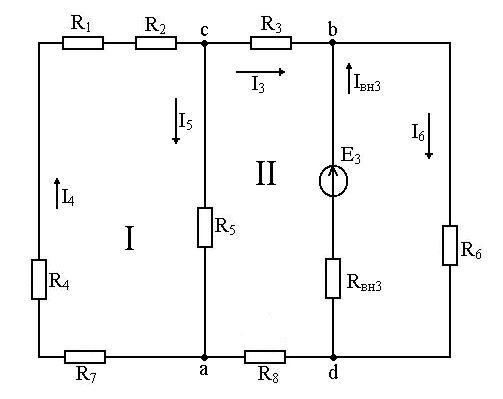 а) -I4 + I5 =0 b) I3 - Iвн3 - I6 =0 с) -I3 + I4 - I5 =0 I) I4*(R1 + R2 + R4 + R7) + I5*(R5) =0 II) I5*R5 + I3*(R3+R8) - Iвн3*(Rвн3) = -E3 И еще, на схеме было указано 6 ключей, два мне сказали удалить (вместе с прилегающими к ним ветвями) а остальные четыре замкнуть. А на схеме надо как-то обозначать замкнутые ключи? И будут ли они играть какую-либо роль при расчете токов? Эскизы прикрепленных изображений -------------------- Нас десять братьев на тропе, идем мы быстро, на легке ...